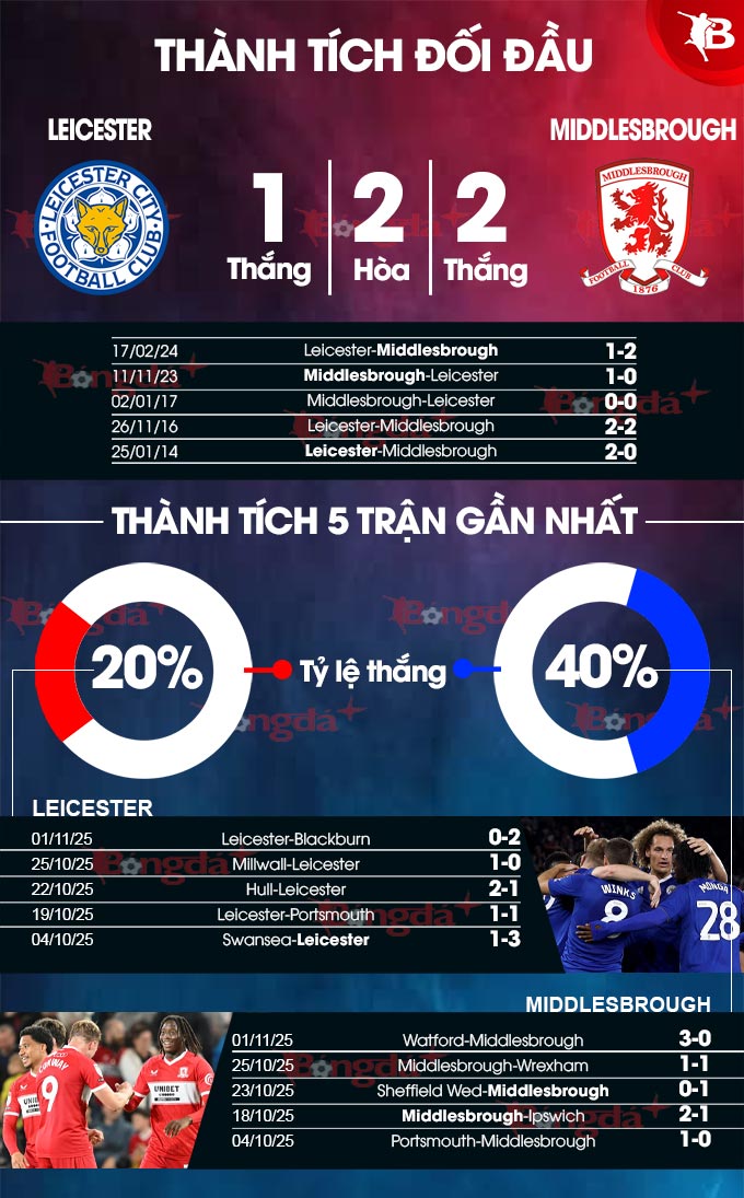 Phân tích phong độ Leicester vs Middlesbrough