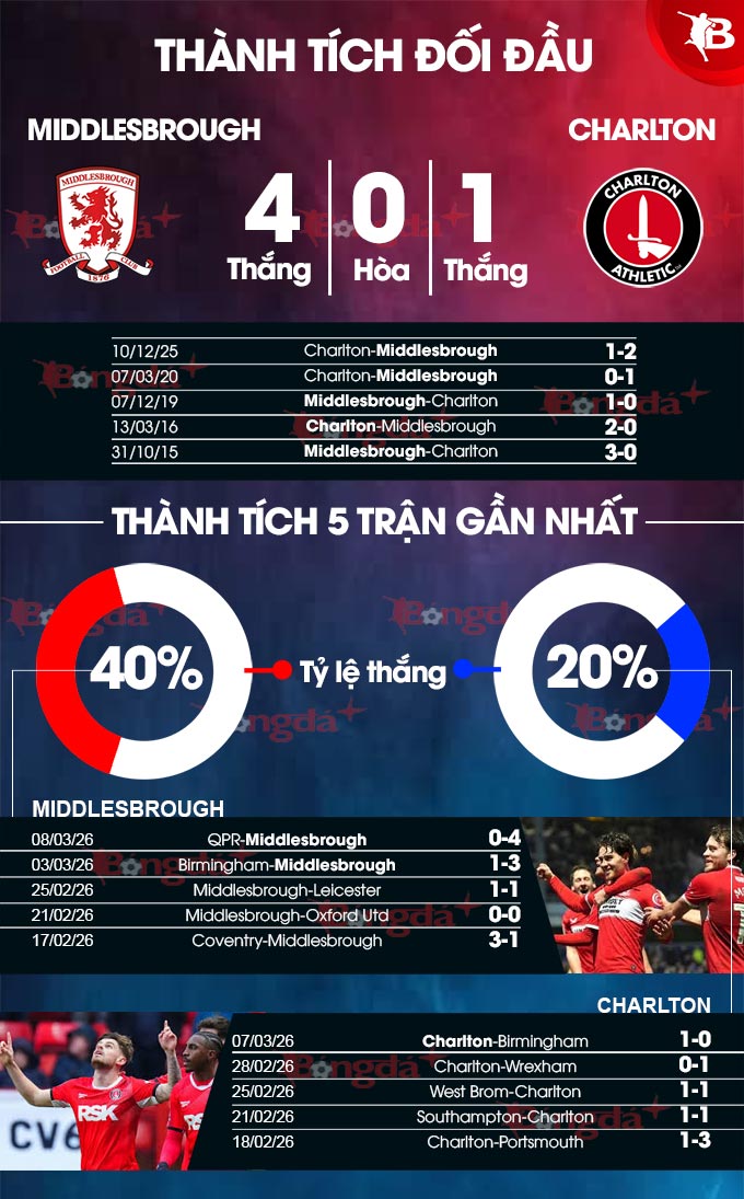 Phân tích phong độ Middlesbrough vs Charlton