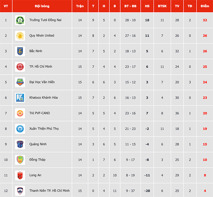 Trong 2 ngày 18 và 19/4 sẽ diễn ra các cặp đấu còn lại của vòng 15. Với việc TP.HCM và Đại học Văn Hiến cầm chân nhau, Quy Nhơn United có cơ hội tăng tốc, khi đối thủ của họ chỉ là Trẻ PVF-CAND. Trong khi đó, Đồng Nai của Xuân Trường, Minh Vương hào hứng nối dài chuỗi bất bại lên con số 15, khi tiếp đón Quảng Ninh trên sân nhà.
