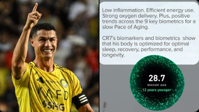 Kết quả này được công bố bởi Whoop, công ty chuyên về phân tích dữ liệu sinh học. Cụ thể, Whoop đánh giá 9 chỉ số quan trọng liên quan đến giấc ngủ, cường độ tập luyện, nhịp tim và cấu trúc cơ thể. Các chỉ số này cho thấy Ronaldo có "khả năng kiểm soát trao đổi chất vượt trội". Tất cả đều chỉ ra rằng Ronaldo đang vận hành cơ thể ở trạng thái tối ưu, tương đương một vận động viên khoảng 28,7 tuổi.