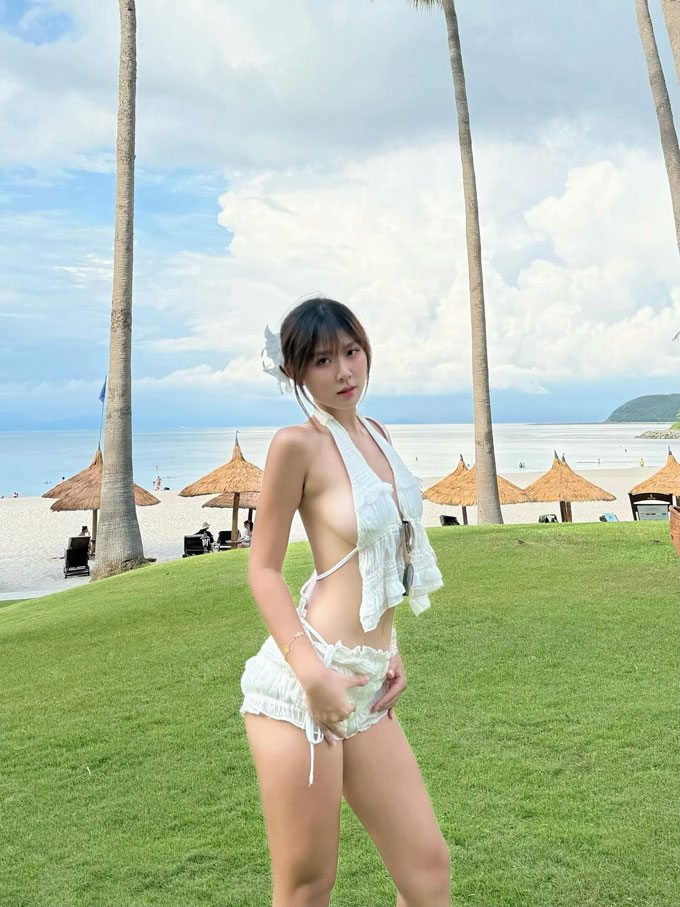 Không thể phủ nhận rằng, điểm mạnh lớn nhất của Em Kim nằm ở vóc dáng cân đối cùng khả năng biến hóa hình ảnh linh hoạt. Khi cần, cô có thể xuất hiện năng động với đồ thể thao; nhưng chỉ cần thay đổi outfit, cô lập tức trở nên quyến rũ và trưởng thành hơn. Bikini vì thế trở thành “vũ khí” giúp cô khẳng định phong cách cá nhân và thu hút sự chú ý.