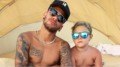 Chân sút Neymar đã tạo dáng khá ăn ý cùng cậu con trai Davi Lucca trước ống kính máy ảnh. Thú vị hơn cả là cậu nhóc cũng đeo kính râm to bự choán gần hết khuôn mặt trông ngầu không kém ông bố.