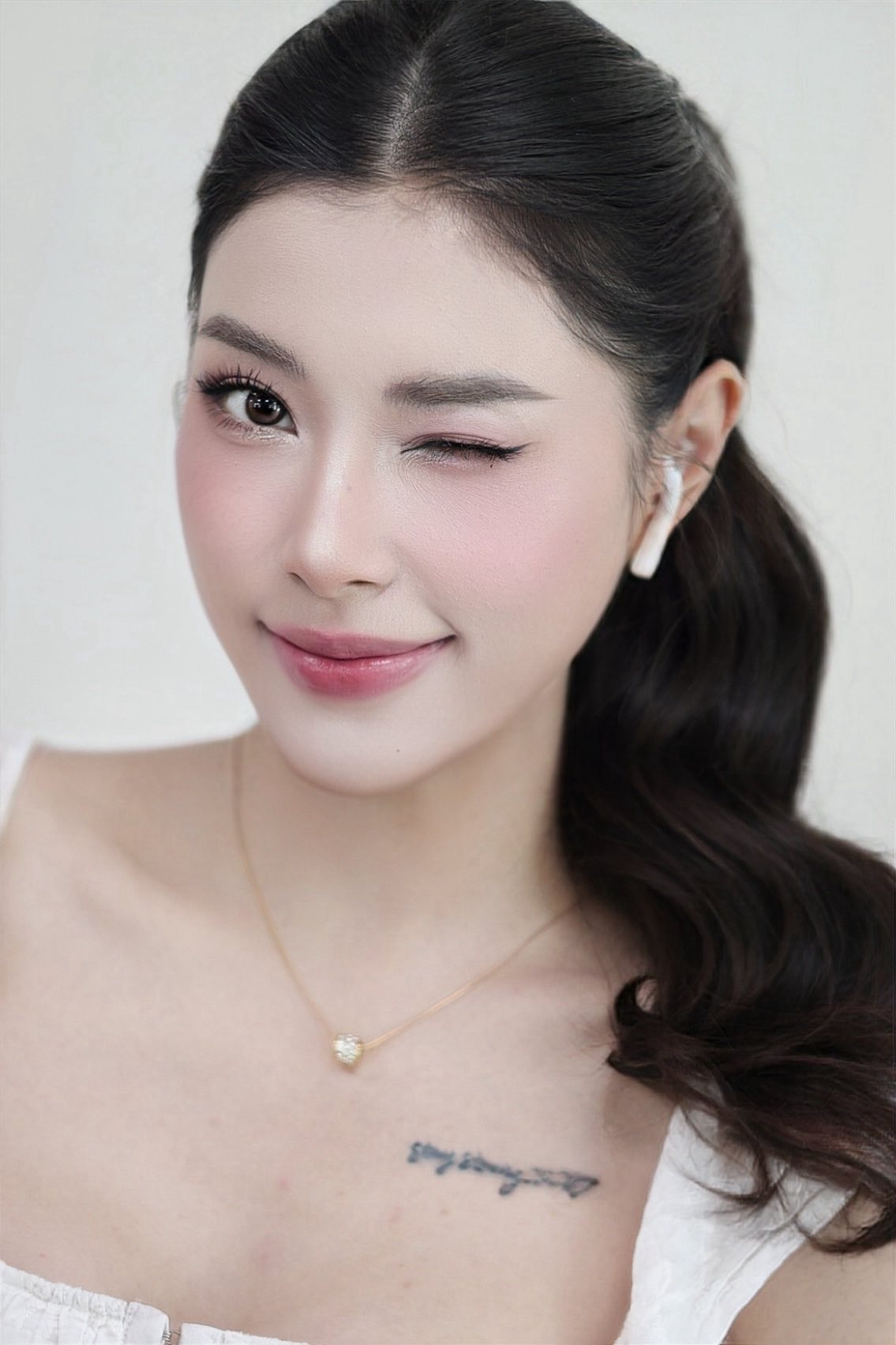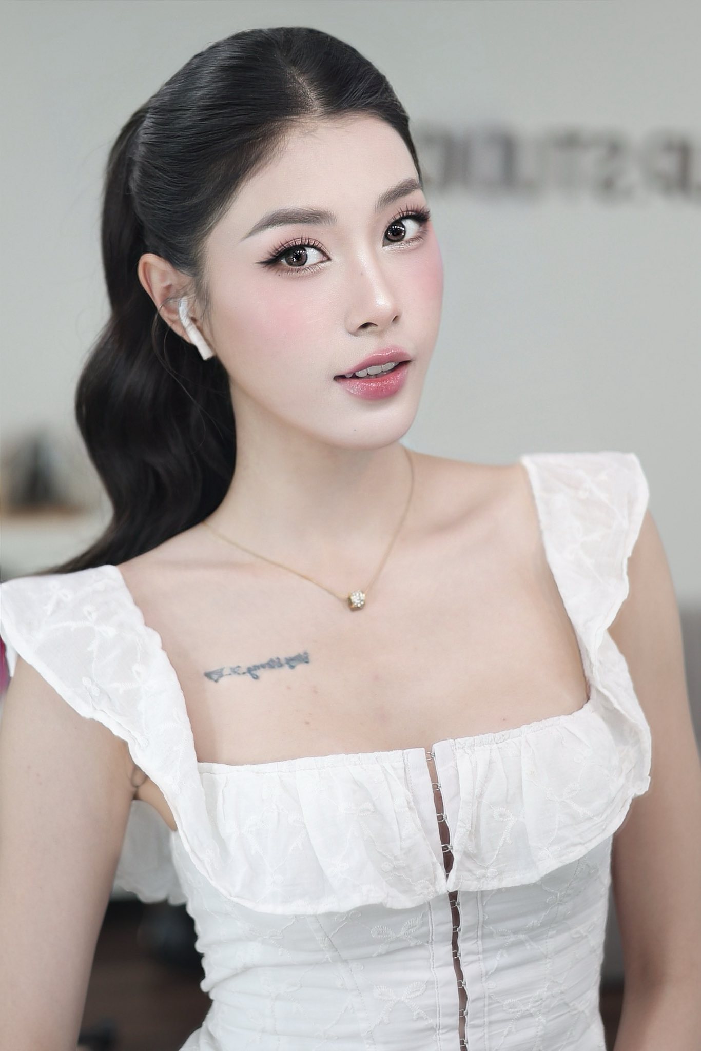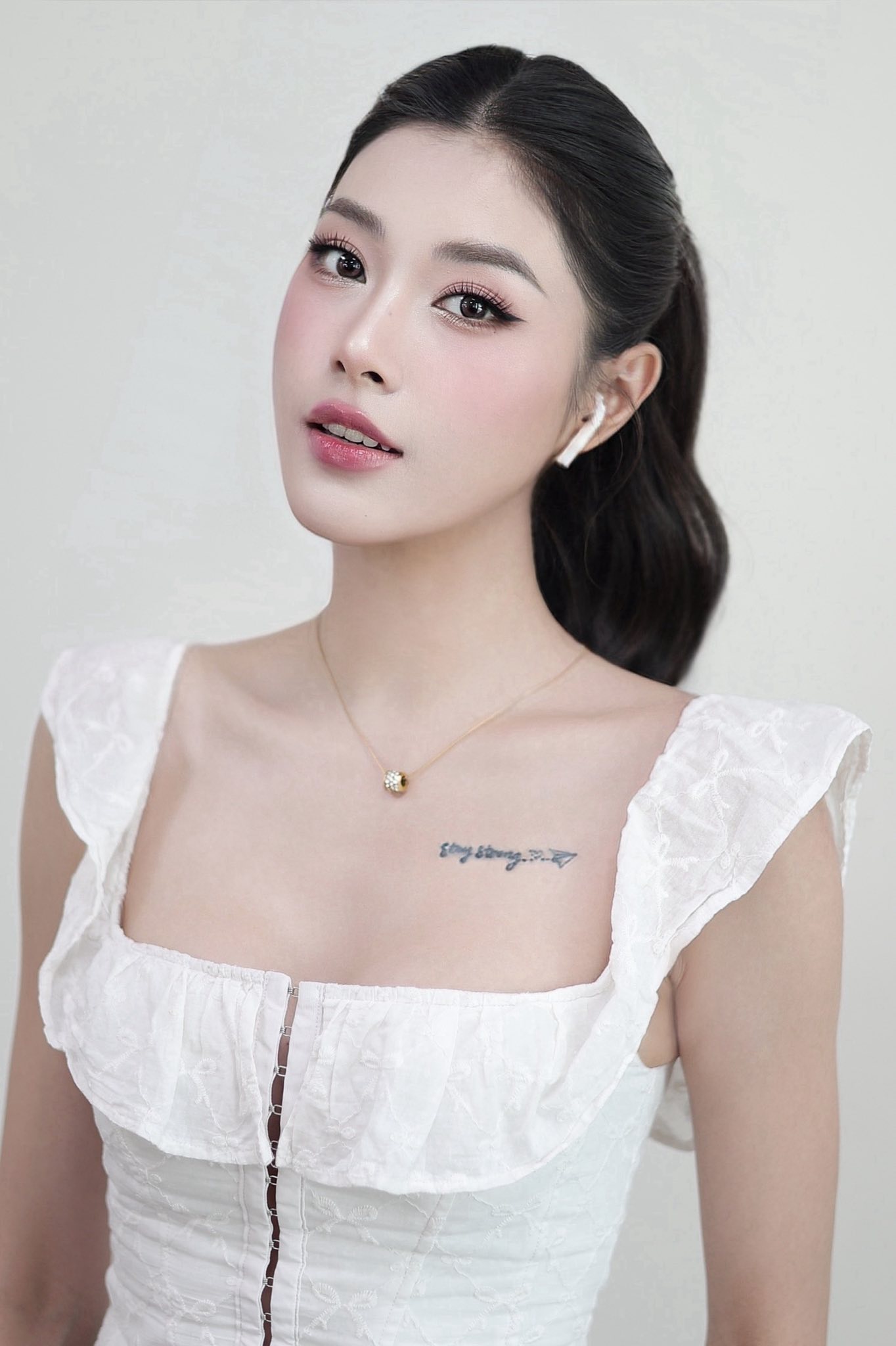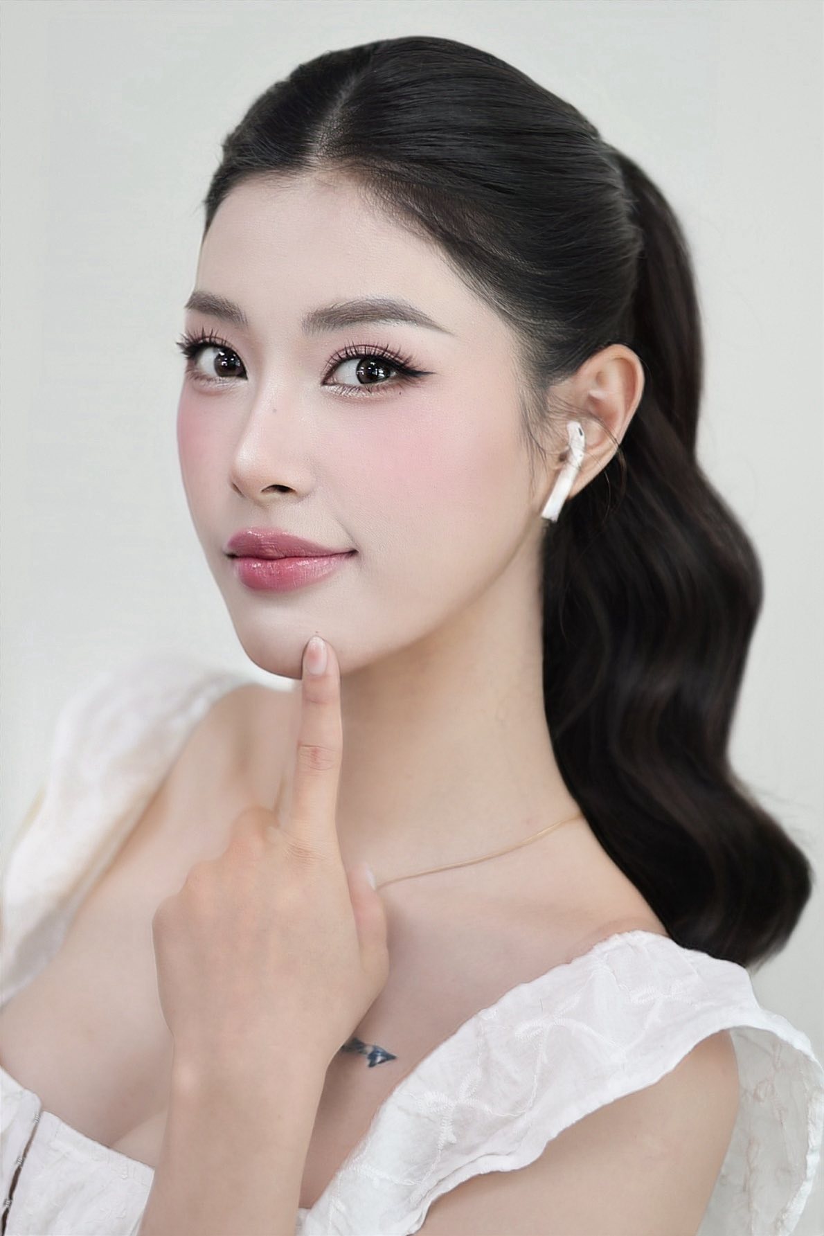 Chưa hết, cách trang điểm của Thu Huyền cũng khiến cho cánh chị em phải đắm say. Ngay cả khi "cố tình" chụp sát mặt, Thu Huyền cũng khiến tất cả chỉ biết thốt lên rằng "chuẩn không thể chỉnh" vì da quá đẹp, mịn màng...