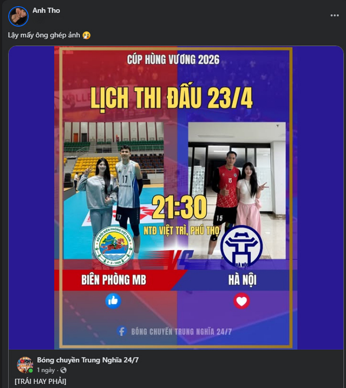 Cụ thể, Anh Thơ "than phiền" vì việc hình ảnh của mình bị lấy ra để quảng cáo cho 1 trận bóng chuyền của phái nam. Các fan của Anh Thơ cũng được fan "tá hỏa" khi biết thông tin này. Có người còn hỏi Anh Thơ có phải bị hack không. Rất may Facebook cá nhân của cô gái này không gặp vấn đề gì.
