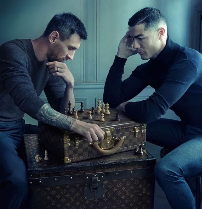 Cristiano Ronaldo và Messi đánh cờ (41,6 triệu lượt thích): Bức ảnh quảng cáo của Louis Vuitton chụp hai huyền thoại Ronaldo - Messi đấu trí trên bàn cờ, trở thành một trong những khoảnh khắc mang tính biểu tượng của cặp đôi huyền thoại hiện tại của bóng đá thế giới.