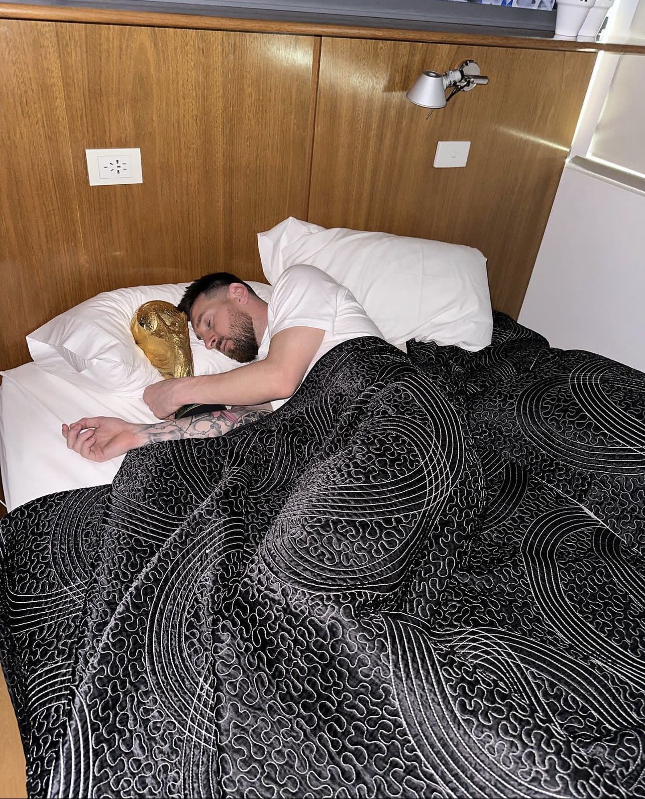 Lionel Messi ngủ cùng Cúp vàng (53,7 triệu lượt thích): Hai ngày sau chung kết, Messi lại khiến mạng xã hội bùng nổ với bức ảnh nằm trên giường, ôm chiếc cúp vô địch World Cup 2022 - khoảnh khắc vừa đời thường, vừa đáng yêu