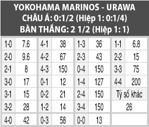 YOKOHAMA F. MARINOS THẮNG KÈO CHÂU Á: Yokohama hơn hẳn Urawa Reds về thực lực. Yokohama còn có ưu thế sân nhà, nơi họ toàn thắng cả 7 trận gần đây. Chưa hết, Yokohama còn thắng tới 4/5 trận gặp Urawa Reds gần nhất. Urawa Reds chỉ hòa và thua ở 3/4 trận sân khách vừa qua.