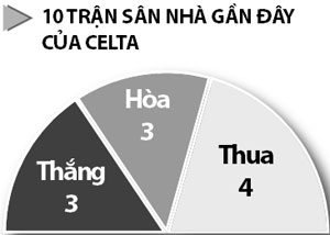 Celta Vigo thua 5, hòa 2, thắng 3/10 trận gần đây theo châu Á và chỉ thắng 1, hòa 1, còn lại thua 5/7 trận sân nhà mới nhất theo châu Á.