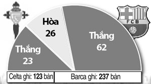 Xét về đối đầu, Barca đương nhiên vẫn áp đảo Celta Vigo với 62 chiến thắng, 26 trận hòa và 23 thất bại sau 111 lần chạm trán ở mọi đấu trường. Nhưng Azulgrana khá ngán những chuyến đi tới tổ ấm của Celta Vigo, nơi thành tích của họ là thắng 20, hòa 15 và thua 20 sau 55 trận. Tính riêng tại La Liga, tình thế của Barca khả quan hơn một chút với 19 thắng, 13 hòa và 16 thua trong 48 chuyến thăm Balaidos.