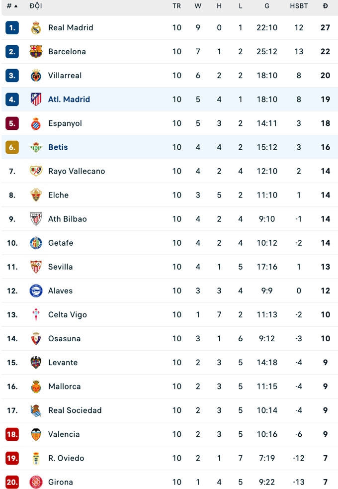 Kết quả cuối cùng của trận đấu này là 2-0 nghiêng về phía Atletico. Đội bóng của Diego Simeone leo lên vị trí thứ 4 với 19 điểm, trong khi Betis giậm chân ở vị trí thứ 6 với 16 điểm.