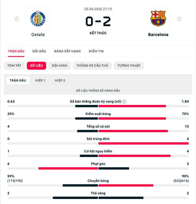 Dẫu vậy, kết quả 2-0 là quá đủ để Barca khẳng định vị thế số một. Đây cũng là chiến thắng sân khách đầu tiên của họ trước Getafe kể từ năm 2019. Quan trọng hơn, khoảng cách 11 điểm với Real lúc này gần như đã đặt một tay Barca vào chiếc cúp vô địch. Nếu tiếp tục duy trì phong độ, họ hoàn toàn có thể đăng quang sớm, thậm chí biến trận El Clasico sắp tới thành màn “đăng quang sớm” ngay trước đại kình địch.