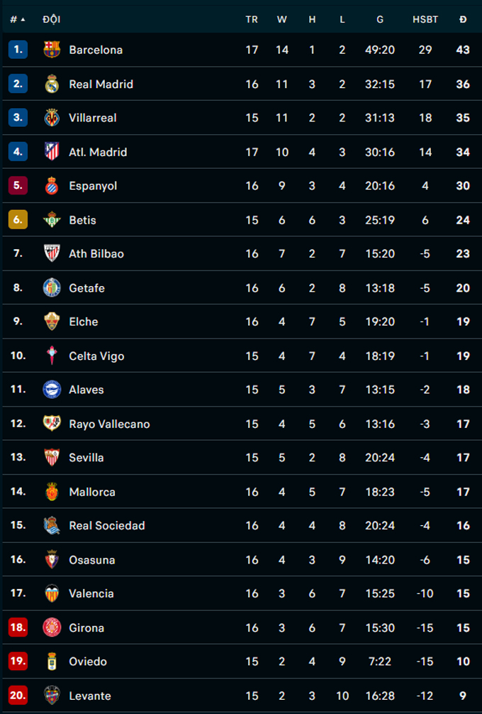 Kết quả này giúp đội chủ sân Camp Nou củng cố ngôi đầu La Liga khi có 43 điểm trong tay, hơn đội xếp thứ 2 là Real Madrid 7 điểm nhưng đá nhiều hơn 1 trận.
