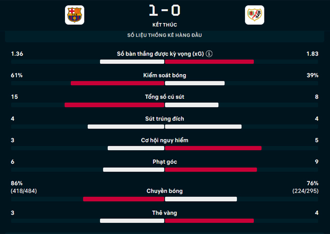 Không muốn ra về tay trắng, các cầu thủ Vallecano vùng lên vô cùng mạnh mẽ và liên tục tạo ra sức ép lên phần sân Barca. Nhưng trong ngày thủ thành Joan Garcia chơi cực hay, mọi nỗ lực dứt điểm của dàn sao bên phía Vallecano đều không mang lại kết quả như mong đợi.