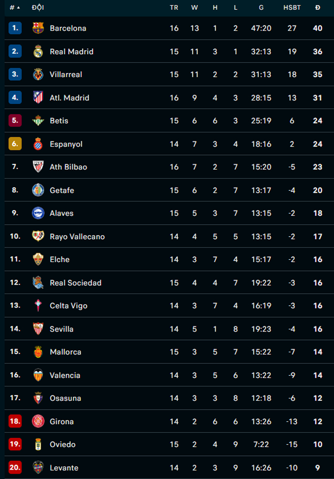 Đội hình thi đấu Betis vs Barca