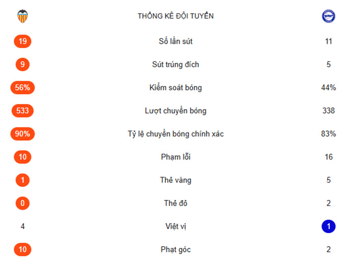 Chưa dừng lại ở đó, bước ngoặt lớn xảy ra ở phút bù giờ thứ 7 khi Alaves nhận hai thẻ đỏ liên tiếp dành cho Jon Pacheco và Ander Guevara sau những pha phản ứng quyết liệt. Chơi hơn người, Valencia được hưởng phạt đền ở phút 90+9. Trên chấm 11m, Hugo Duro lạnh lùng đánh bại thủ môn Antonio Sivera, ấn định chiến thắng nghẹt thở 3-2 cho đội chủ sân Mestalla.