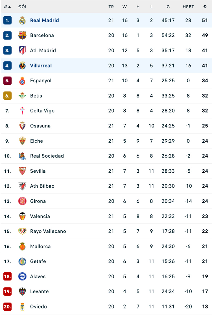 Trận thắng này giúp Real tạm chiếm ngôi đầu trên BXH La Liga với 2 điểm nhiều hơn Barca. Đội bóng xứ Catalunya sẽ đối đầu với Oviedo vào tối nay.