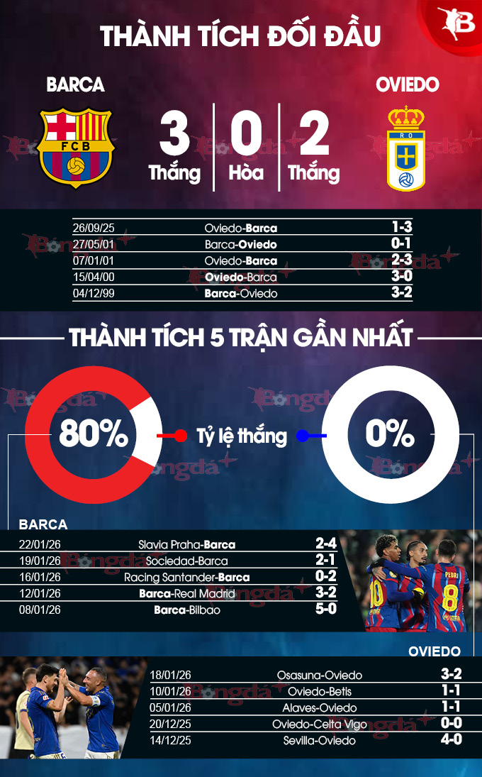 Xét trên nhiều phương diện, Oviedo không phải là đối thủ của Barca. Đội khách đang trải qua chuỗi 14 trận liên tiếp không biết mùi chiến thắng, trong đó họ trải qua 8 trận hòa. Những thành tích thi đấu kém cỏi khiến họ đang xếp đội sổ ở La Liga với vỏn vẹn 13 điểm. Vì thế, Oviedo cũng rất cần điểm để tăng tốc trong cuộc đua trụ hạng.