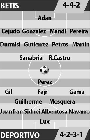 Trong khi đó, ngoài lợi thế sân nhà ra, Betis lép vế trước Deportivo về mọi mặt. Cụ thể, đội hình hiện tại của Betis vẫn còn quá nhiều vấn đề, nhất là sự yếu kém ở hàng thủ. Việc quá phụ thuộc vào khả năng ghi bàn của tiền đạo Ruben Castro khiến lối chơi của Betis dễ bị đối thủ phong tỏa.