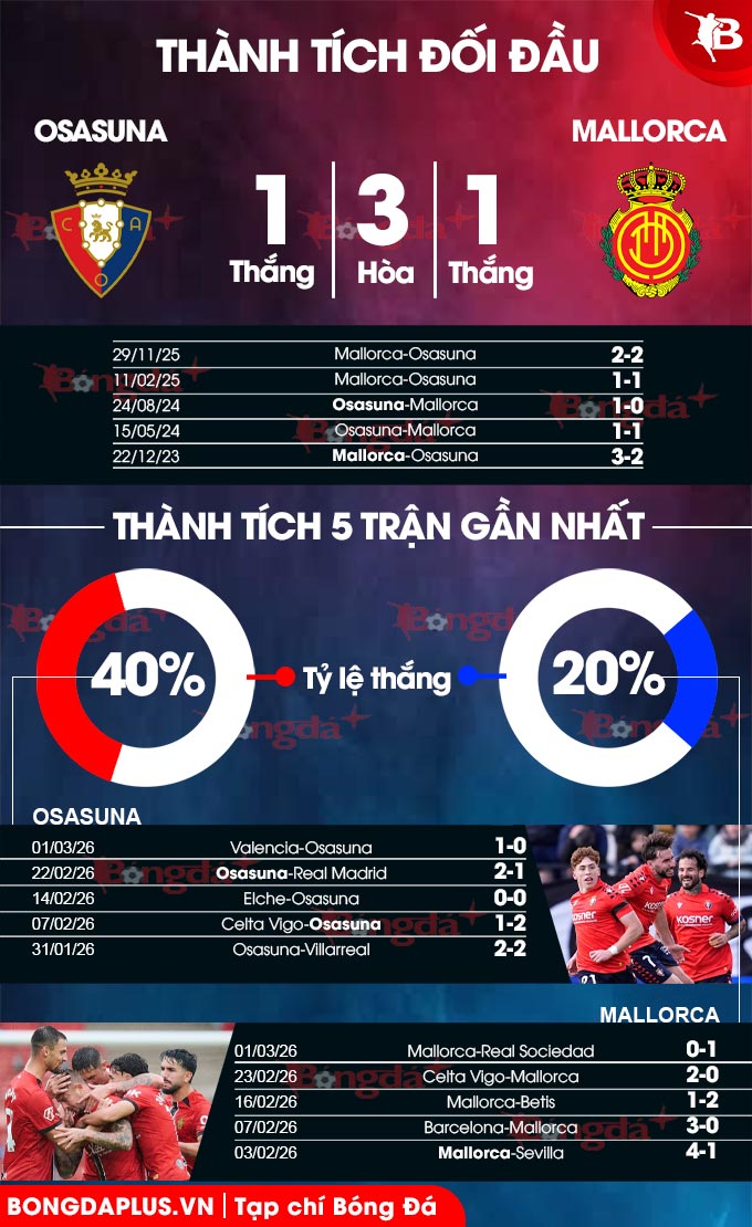 Phân tích phong độ Osasuna vs Mallorca
