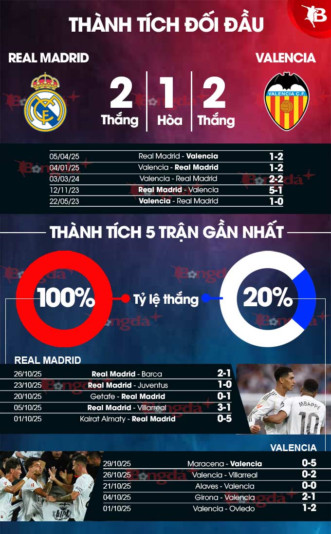BONGDAPLUS dự đoán tỉ số Real Madrid vs Valencia