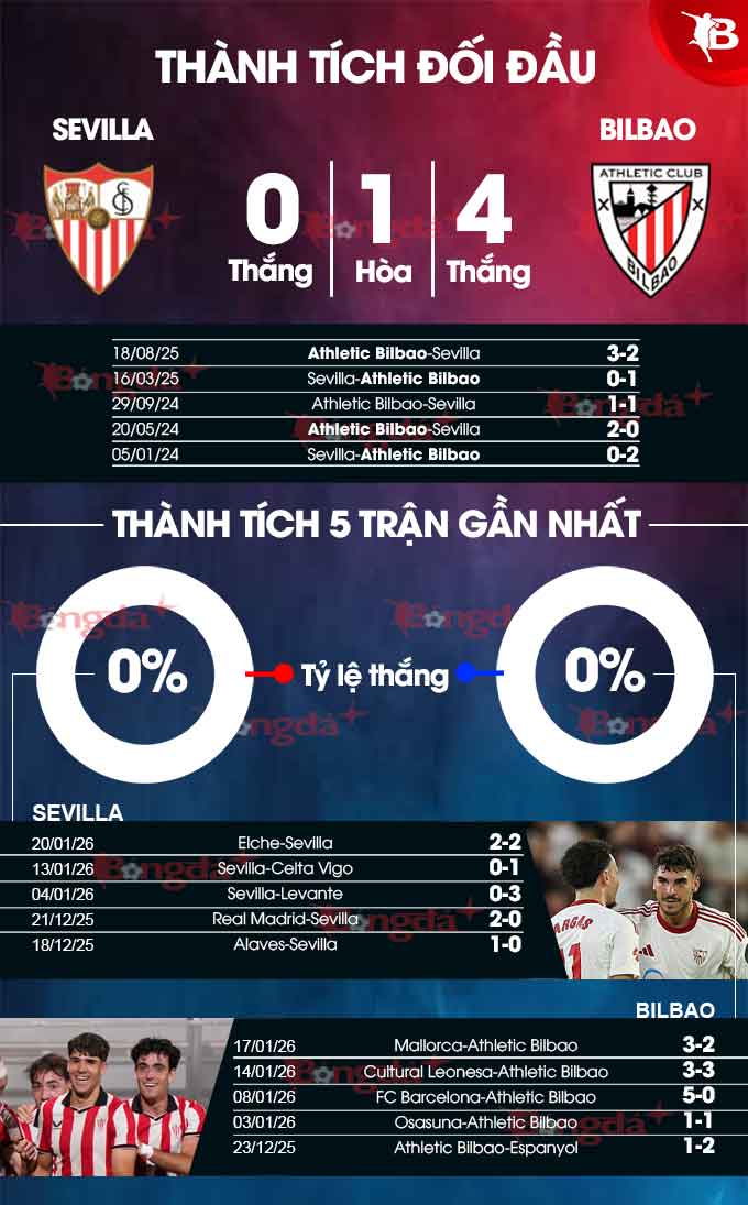 Chỉ phải gặp đối thủ bị mất phương hướng từng thua mình 2-3 ở lượt đi, Athletic có đang chơi không tốt thì nhiều khả năng họ vẫn đủ sức kiếm được 1 điểm. Nếu kịch bản trên xảy ra, thì chuỗi trận không thắng liên tiếp của Sevilla trước Bilbao sẽ được nâng lên con số 6.