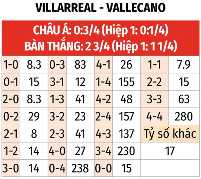 - Ít bàn thắng: Vallecano đang có mạch 3 trận liên tiếp giữ sạch lưới tại La Liga. Tính từ đầu mùa, 7/10 trận ở đấu trường cao nhất Tây Ban Nha của đội khách có không quá 2 bàn thắng được ghi. Villarreal cũng giữ sạch lưới 2 trận vừa qua. Chưa kể, 3/4 trận đối đầu gần nhất giữa hai đội có tối đa 2 pha làm bàn.