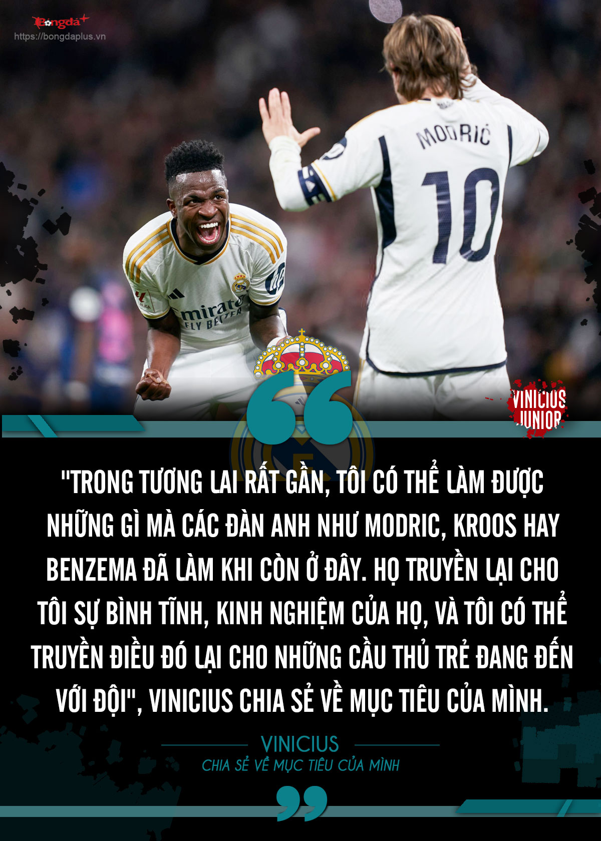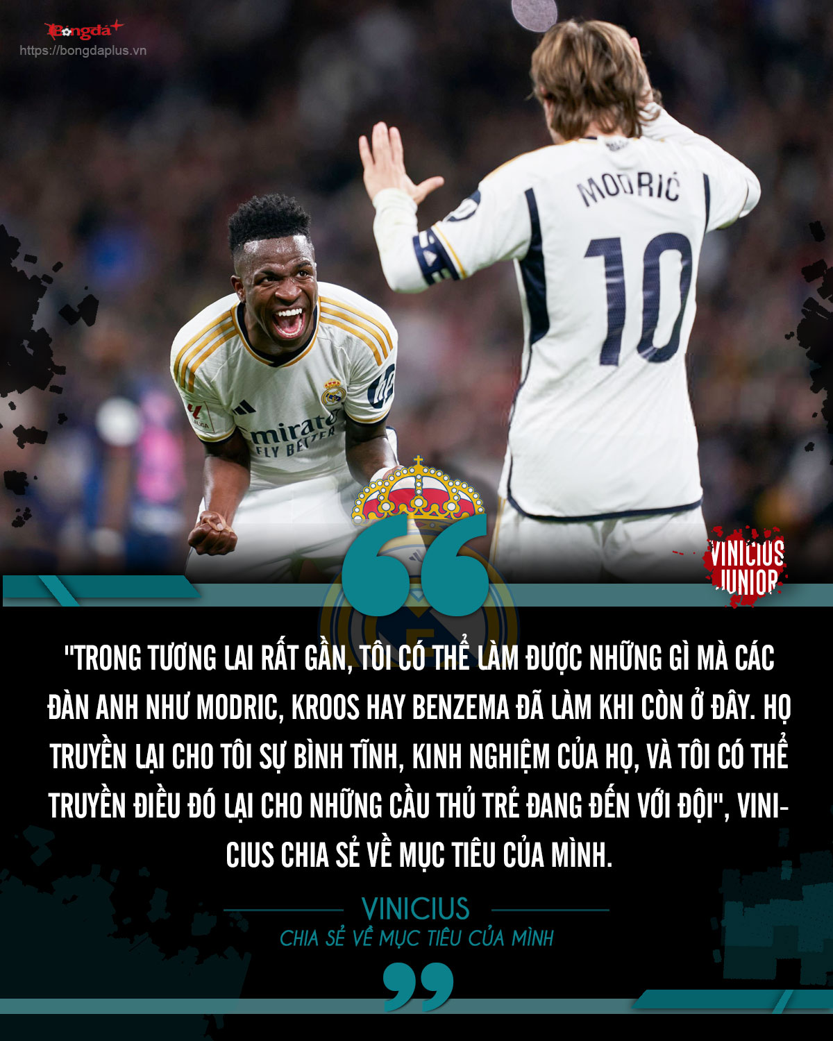 Dường như việc được giao trọng trách gánh vác hàng công của Real Madrid đã tiếp thêm sức mạnh khủng khiếp cho Vinicius, biến anh thành nỗi ám ảnh với mọi hàng thủ. Với 24 pha lập công cùng 11 đường chuyền thành bàn trên mọi đấu trường, Vinicius là nhân tố then chốt giúp Los Blancos đoạt "cú ăn ba" gồm La Liga, Champions League và Siêu cúp Tây Ban Nha.