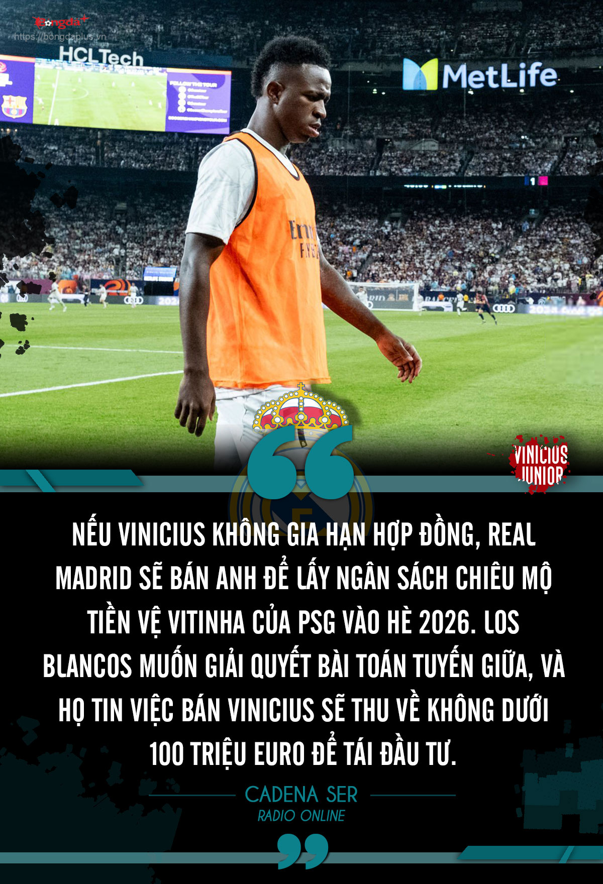 Dù vậy, Real Madrid được cho đã nhìn thấu tâm can của Vinicius và họ sẽ không cho phép điều đó xảy ra. Nếu ngôi sao 25 tiếp tục từ chối gia hạn ở giai đoạn hai của mùa này, anh chắc chắn sẽ phải ra đi kỳ chuyển nhượng hè 2026, không thể khác.