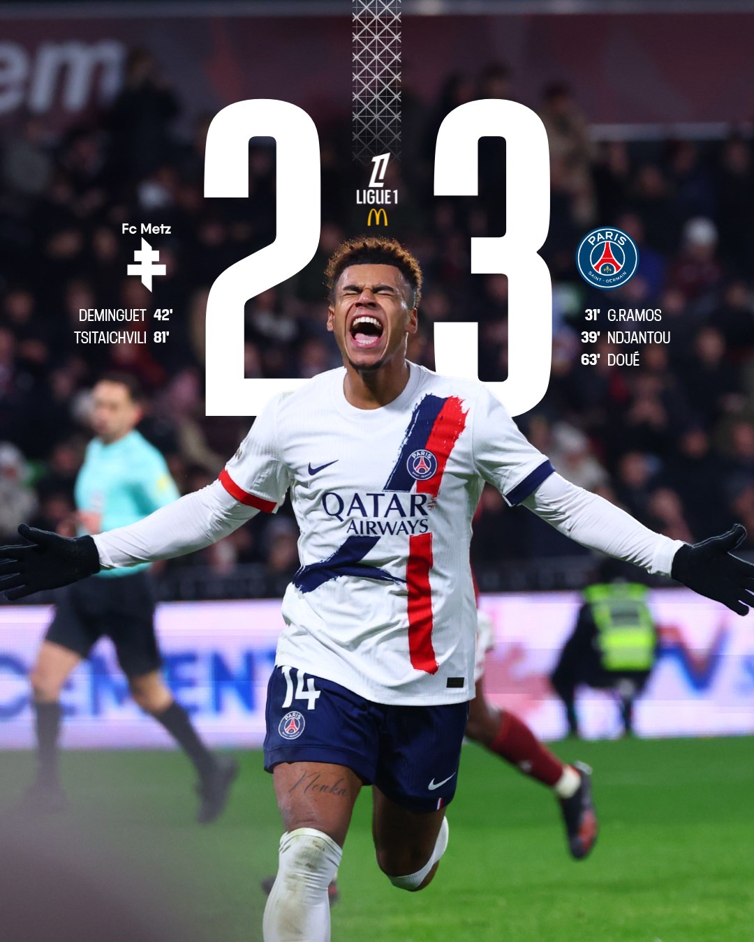 Bàn thắng này cũng giúp dàn sao tấn công PSG cởi bỏ áp lực tâm lí. Phút 39, Mbaye "dọn cỗ" cho Ndjantou nâng tỷ số lên 2-0. Phía đối diện, nỗ lực của Metz cũng giúp đội chủ nhà rút ngắn cách biệt xuống 1-2 ở phút 42 với tình huống lập công của Deminguet..