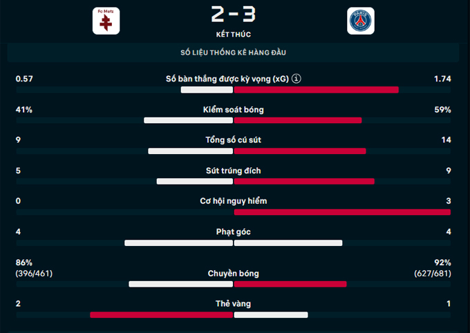 Chạm trán đội cuối bảng Metz, PSG dù không thể tung ra đội hình tối ưu nhưng với các ngôi sao hiện có, họ vẫn đủ sức dồn ép nghẹt thở sau tiếng còi khai cuộc.