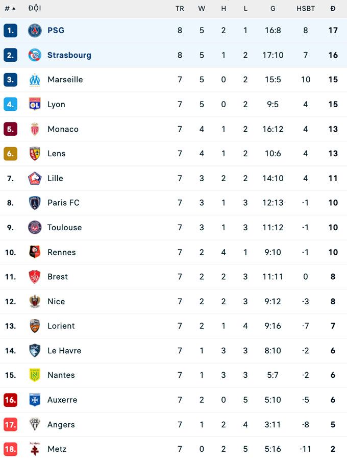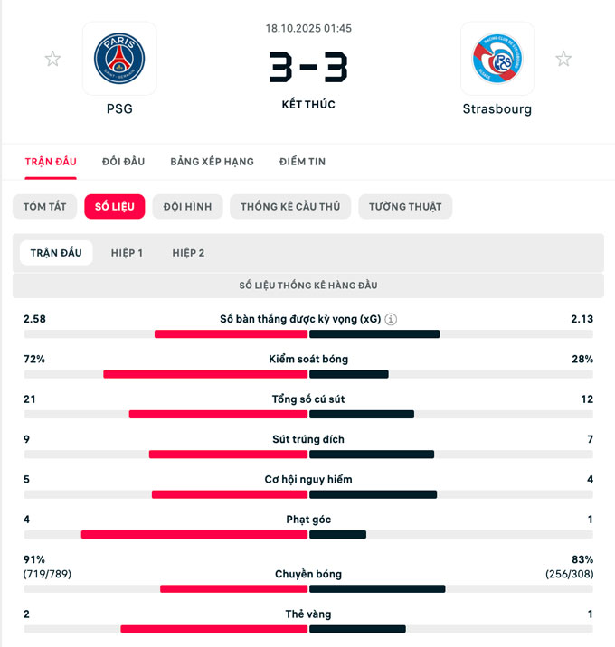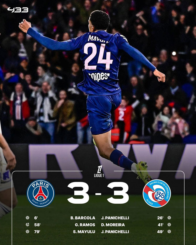 Tỷ số hòa 3-3 giúp PSG giữ được ngôi đầu bảng trước chính Strasbourg, nhưng cả Marseille và Lyon sẽ vượt lên 2 đội này để chiếm 2 vị trí đầu nếu cùng thắng ở vòng này.