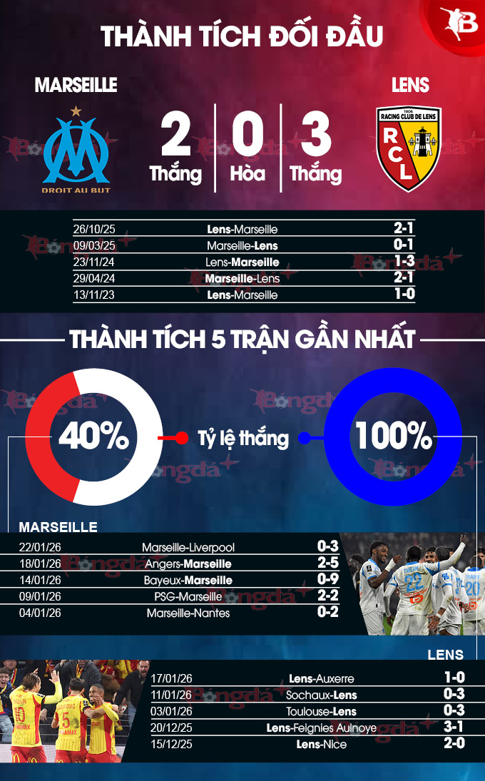 Tổn thương nặng nề vì 2 thất bại liên tiếp trên sân nhà vừa qua, Marseille nhiều khả năng một lần nữa lại trắng tay tại Velodrome, khi Lens quyết tâm giành chiến thắng để trụ lại ngôi đầu BXH Ligue 1.