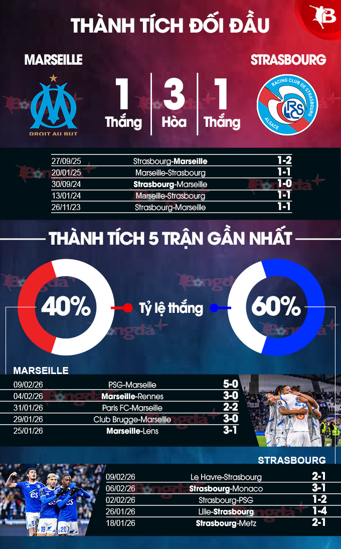 Trên sân khách, Strasbourg chỉ thua 1, hòa 1 và thắng 3 ở 5 trận gần đây. Do đó, việc họ tranh thủ sự hỗn loạn tại Marseille để giành điểm ở Velodrome là kịch bản hoàn toàn có thể xảy ra.