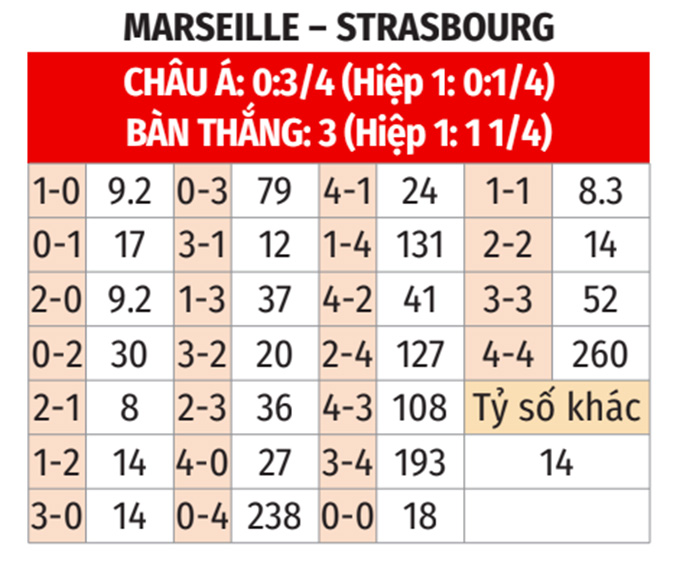 Với những phân tích nói trên, trận này nhiều khả năng sẽ tưng bừng bàn thắng và kịch bản Strasbourg xuyên thủng lưới OM trong hiệp 1 rất dễ xảy ra.