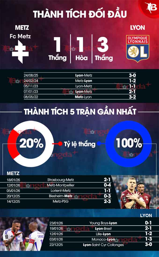 Xét về mọi phương diện, từ đối đầu, phong độ gần đây và lực lượng thi đấu, Lyon đều vượt trội và chắc chắn được giới một điệu đặt niềm tin sẽ rời Metz với 1 chiến thắng thuyết phục.