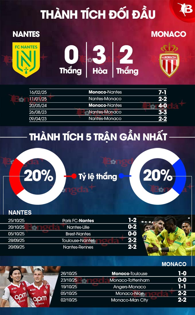 Dù được đánh giá cao hơn, nhưng màn thể hiện kém thuyết phục ở những chuyến làm khách khiến Monaco có thể gặp nhiều thách thức tới từ chủ nhà Nantes, đội đang có sự tự tin sau chiến thắng ở trận gần nhất.