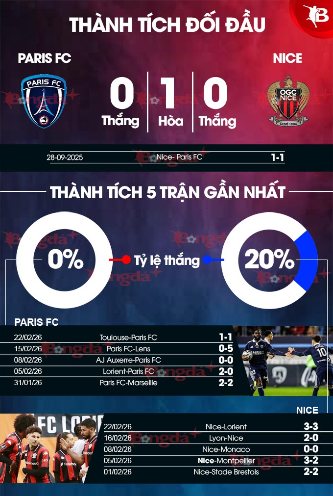 Gặp lại Paris FC trên sân khách, Nice có lý do để lo ngại do họ đã trắng tay ở 6/7 chuyến hành quân xa nhà gần đây tại Ligue 1. Đáng chú ý, Nice tỏ ra kém duyên trước những đội bóng mới thăng hạng như Paris FC. Từ đầu mùa, họ đã 3 lần so tài với những đối thủ dạng này mà chỉ thu về vỏn vẹn 1 điểm.