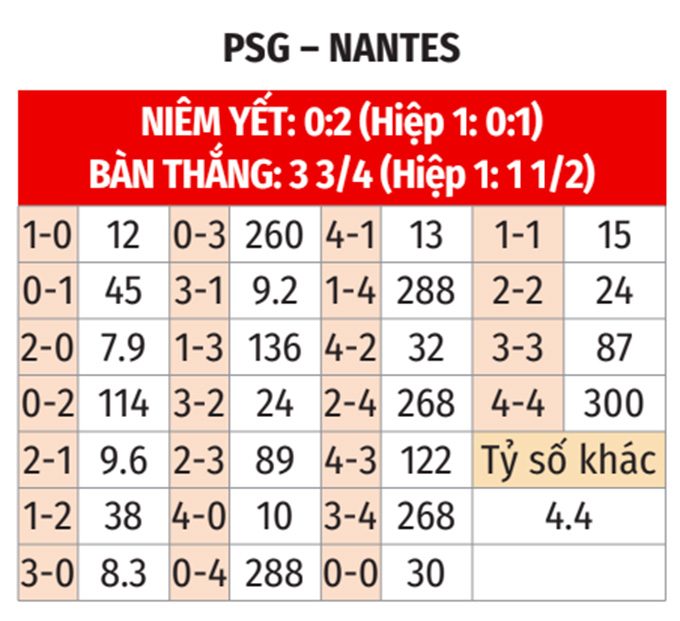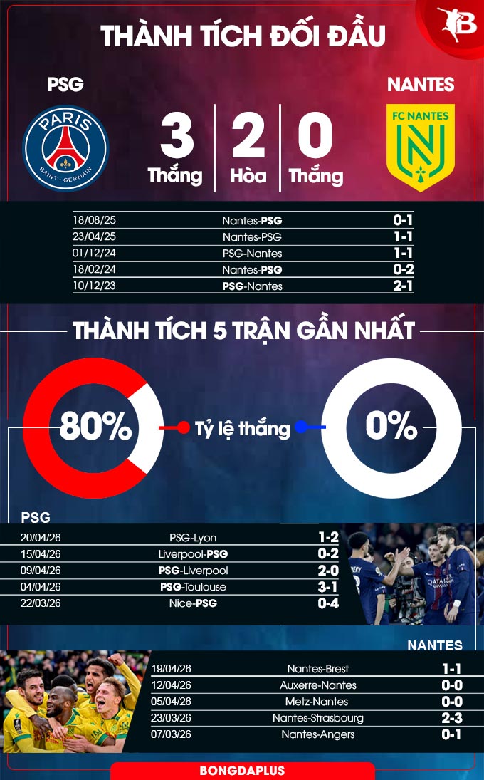 Cũng cần nhấn lạnh thêm rằng, Nantes là đối thủ không dễ bắt nạt. Ở 5 cuộc đụng độ gần nhất, PSG thắng 3, hòa 2 nhưng hầu như đều thắng sát nút, chỉ duy nhất 1 trận có cách biệt 2 bàn.