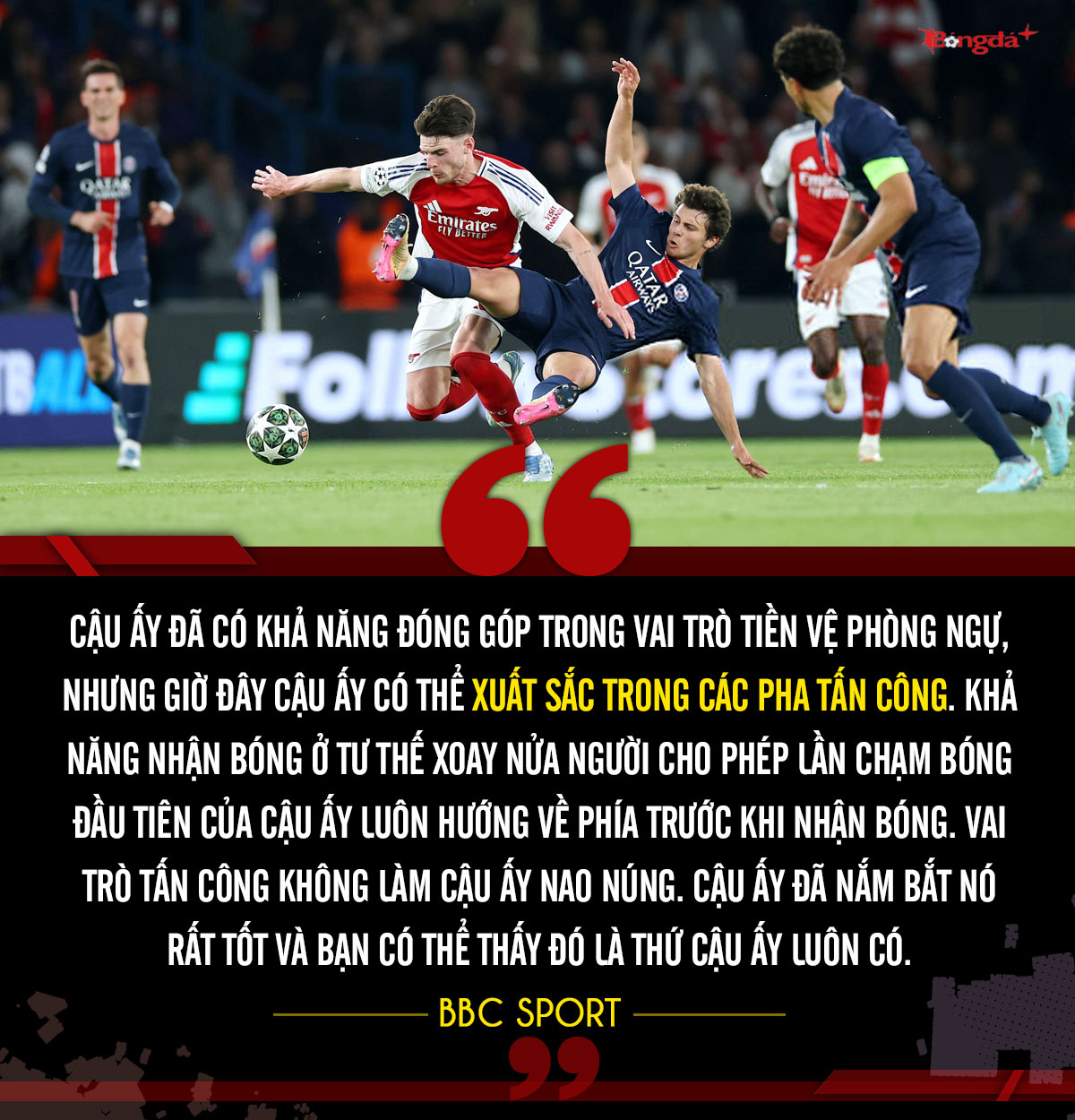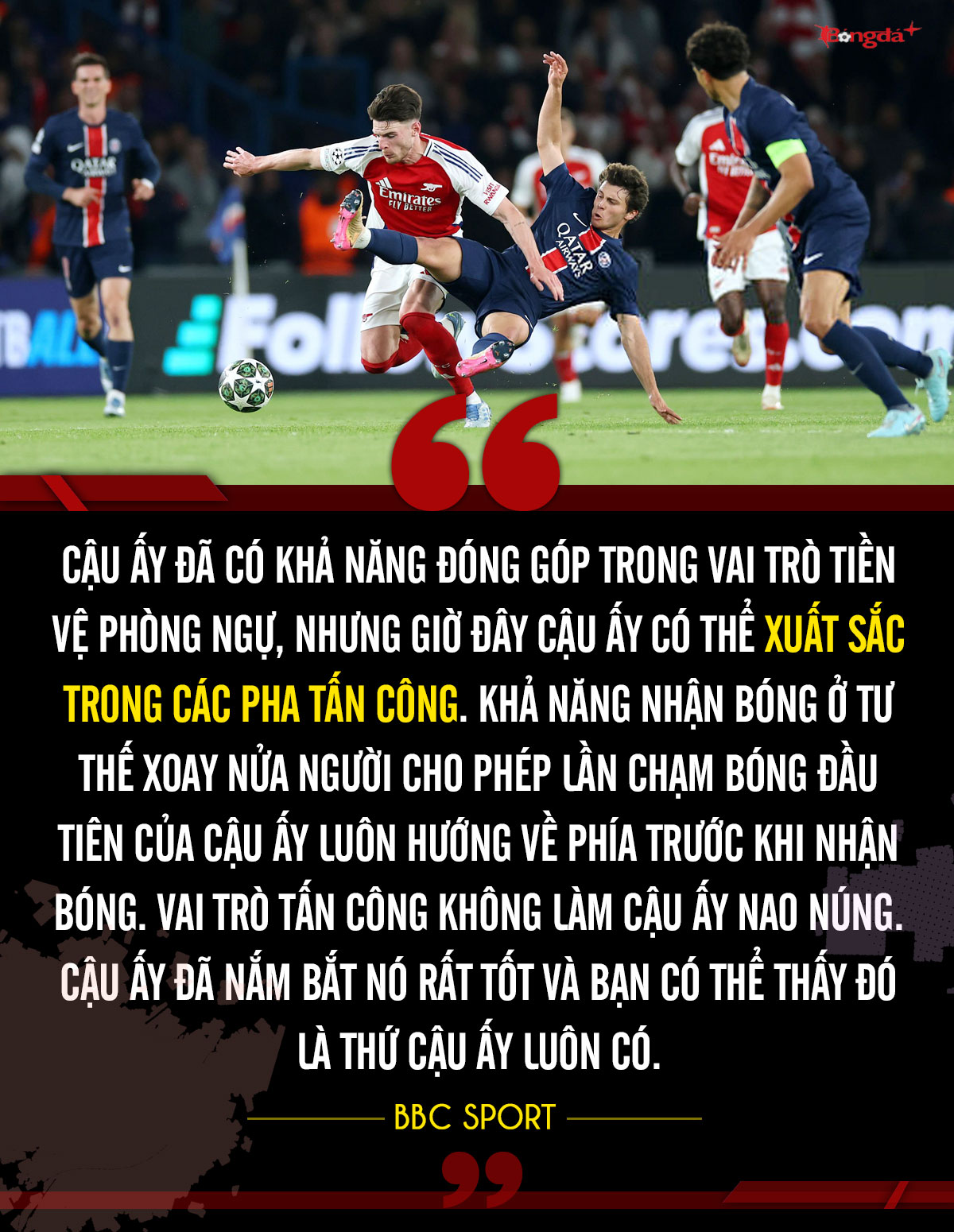 Mùa này, trong bàn thắng vào lưới West Ham, Rice đã xâm nhập vòng cấm muộn để đón bóng bật ra và dứt điểm tốt, ghi bàn mở tỷ số cho Arsenal trong chiến thắng 2-0. Và chuyên gia tuyển dụng tin rằng Rice, mặc dù nổi tiếng với khả năng chạy chỗ, nhưng vẫn chưa nhận được những ghi nhận xứng đáng.