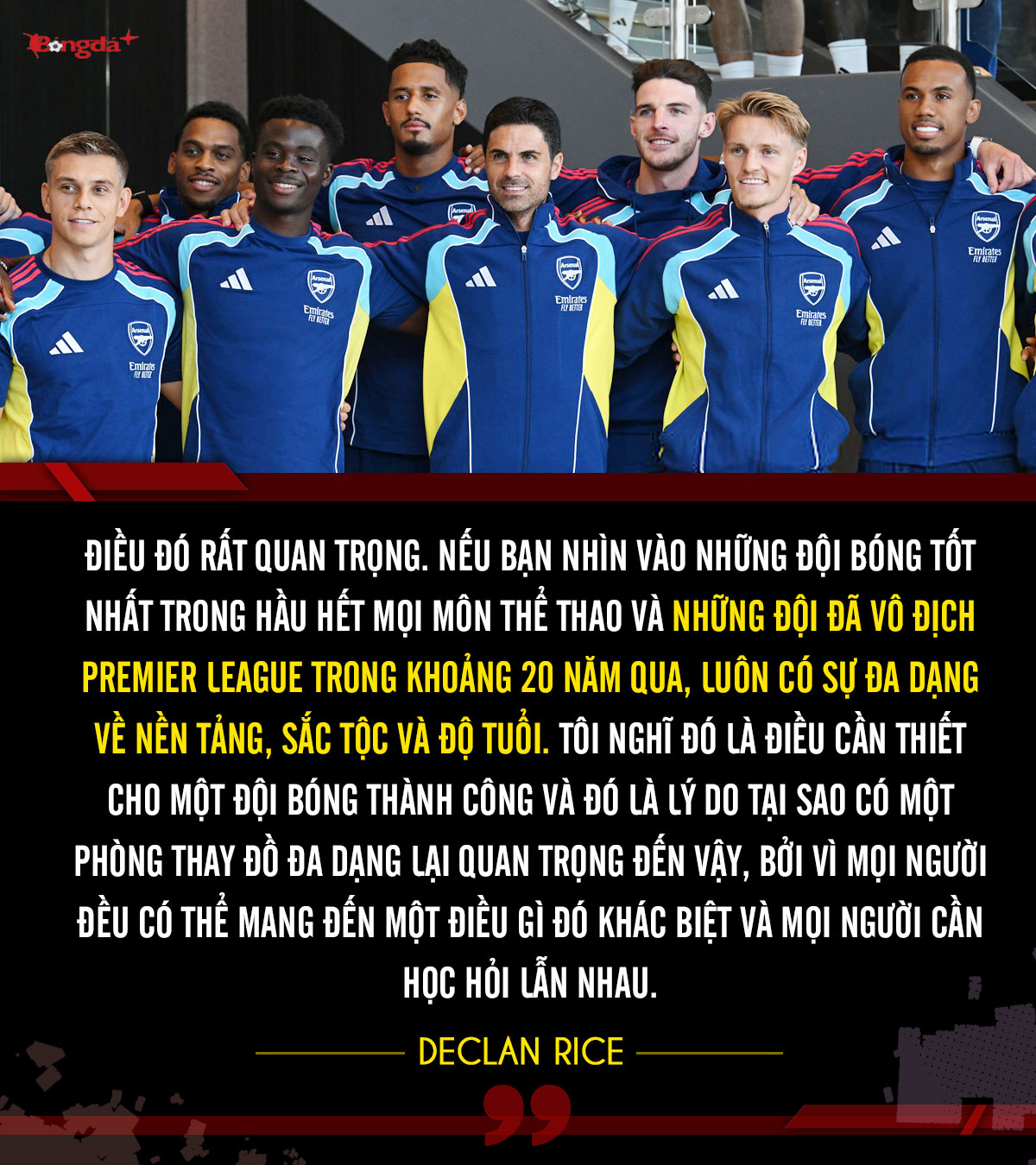 Đó là điều tôi yêu thích ở Premier League và Arsenal – đó là một môi trường đa văn hóa, và mọi người đều hiểu và tôn trọng điều đó. Không có một cầu thủ nào ở đây không hòa hợp với những người khác. Đó là điều làm cho tập thể này trở nên đặc biệt.
