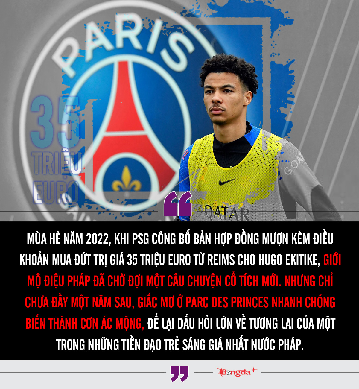 Mùa hè năm 2022, khi PSG công bố bản hợp đồng mượn kèm điều khoản mua đứt trị giá 35 triệu euro từ Reims cho Hugo Ekitike, giới mộ điệu Pháp đã chờ đợi một câu chuyện cổ tích mới.