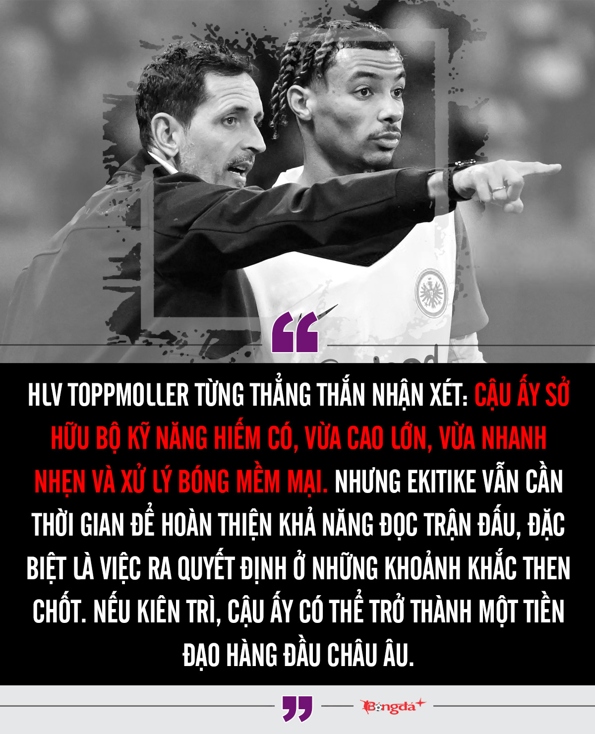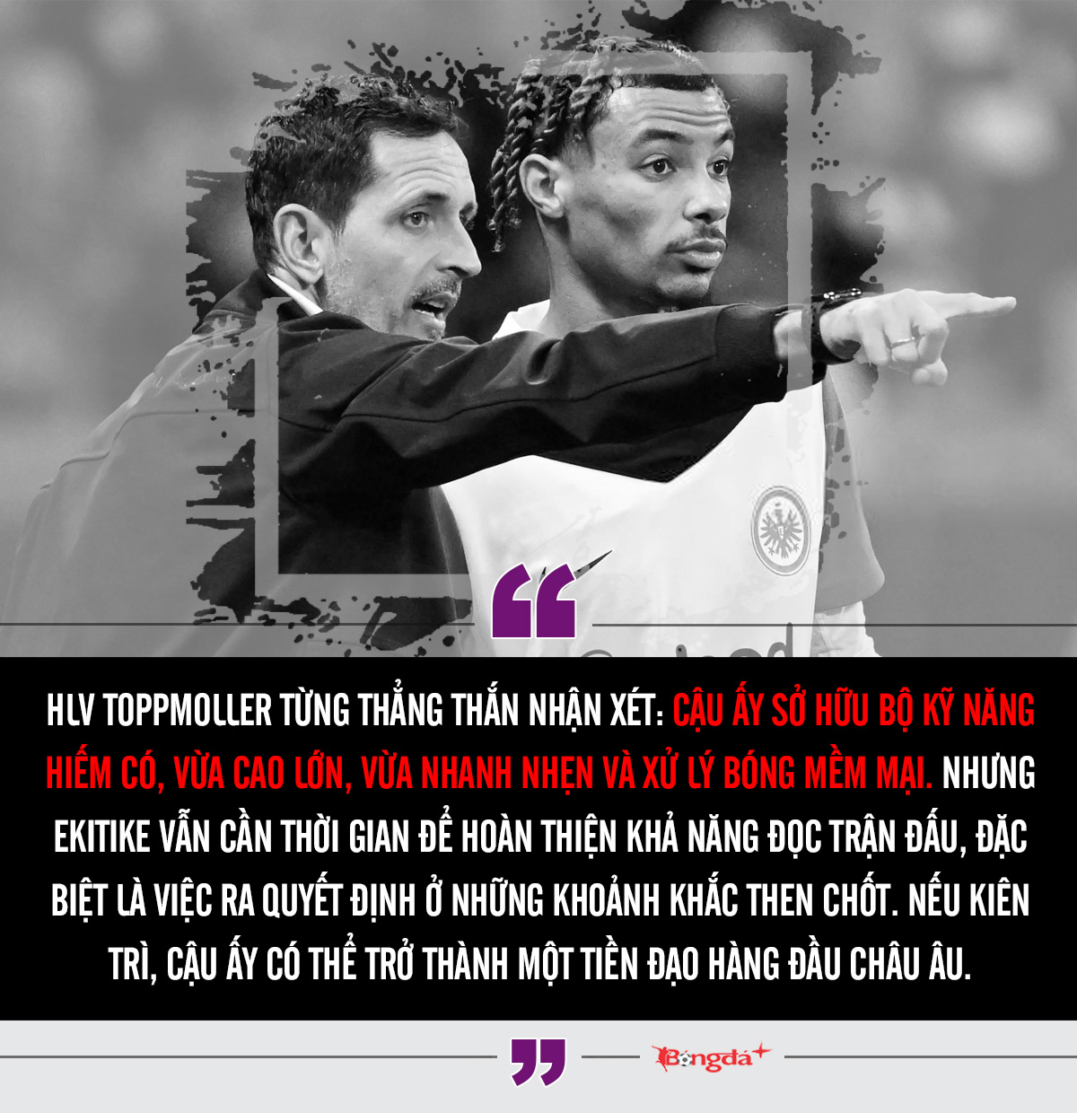 Dù những tín hiệu tích cực đã xuất hiện, ban huấn luyện Frankfurt vẫn cho rằng Ekitike mới chỉ “mở khóa” khoảng 60% tiềm năng. HLV Toppmoller từng thẳng thắn nhận xét: “Cậu ấy sở hữu bộ kỹ năng hiếm có, vừa cao lớn, vừa nhanh nhẹn và xử lý bóng mềm mại. Nhưng Ekitike vẫn cần thời gian để hoàn thiện khả năng đọc trận đấu, đặc biệt là việc ra quyết định ở những khoảnh khắc then chốt. Nếu kiên trì, cậu ấy có thể trở thành một tiền đạo hàng đầu châu Âu”.