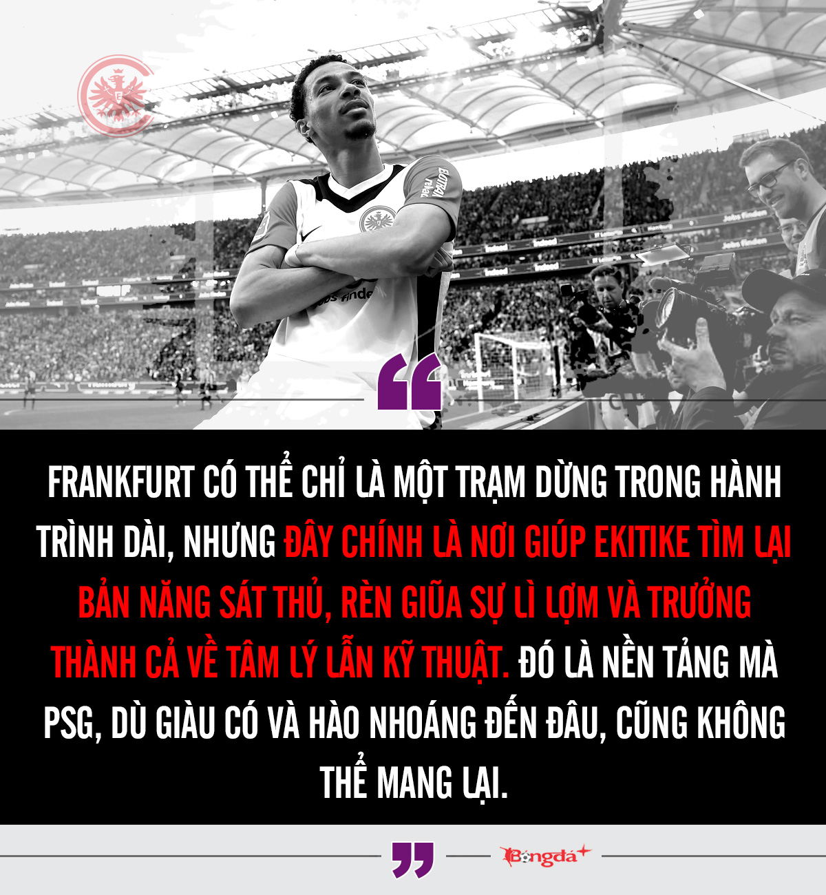 Frankfurt có thể chỉ là một trạm dừng trong hành trình dài, nhưng đây chính là nơi giúp Ekitike tìm lại bản năng sát thủ, rèn giũa sự lì lợm và trưởng thành cả về tâm lý lẫn kỹ thuật. Đó là nền tảng mà PSG, dù giàu có và hào nhoáng đến đâu, cũng không thể mang lại.