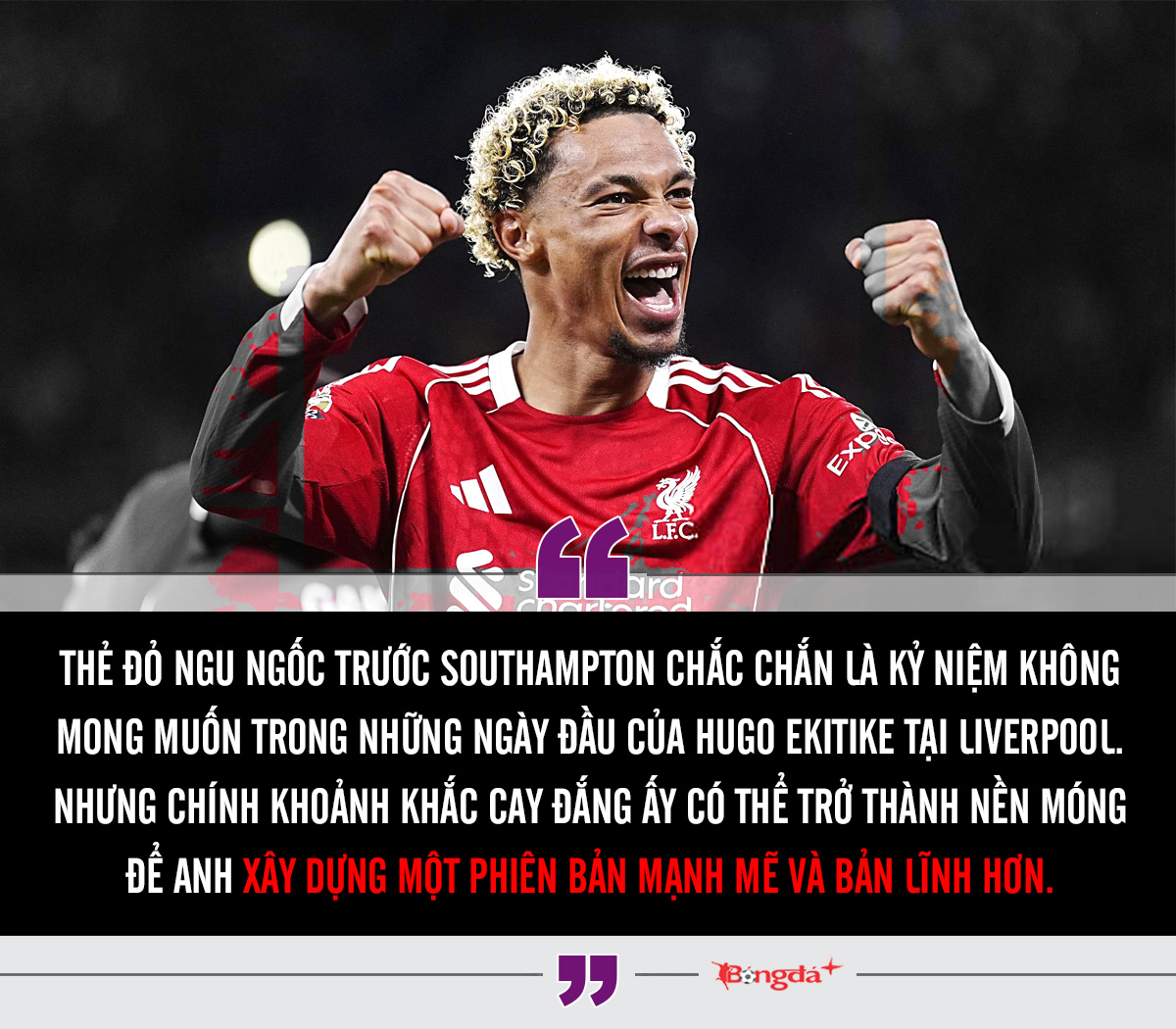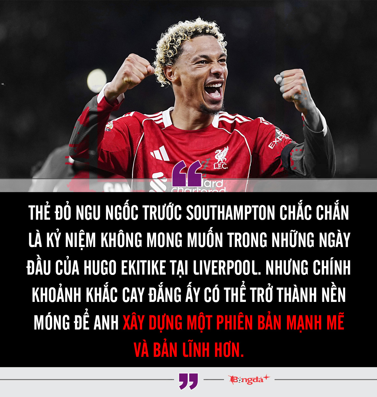 Thẻ đỏ ngu ngốc trước Southampton chắc chắn là kỷ niệm không ai mong muốn trong những ngày đầu của Hugo Ekitike tại Liverpool. Nhưng chính khoảnh khắc cay đắng ấy có thể trở thành nền móng để anh xây dựng một phiên bản mạnh mẽ và bản lĩnh hơn.