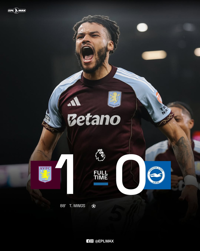 Aston Villa giành chiến thắng tối thiểu 1-0 để tạm dứt mạch không thắng. Họ cũng củng cố vị trí thứ 3 trên BXH với 50 điểm sau 26 vòng đấu.