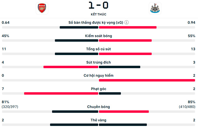 Ở quãng thời gian còn lại, Arsenal dốc toàn lực bảo toàn cách biệt mong manh và họ đã thành công. Chung cuộc, Pháo thủ hạ Newcastle 1-0, qua đó chấm dứt mạch 2 trận toàn thua ở Premier League.