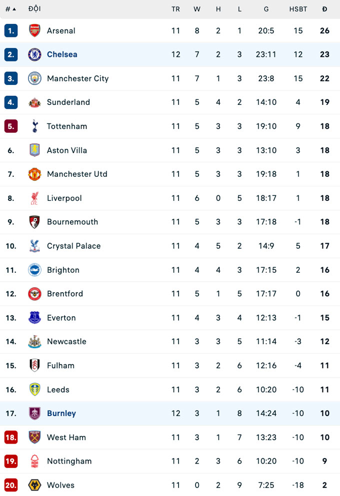 Đội hình thi đấu Burnley vs Chelsea