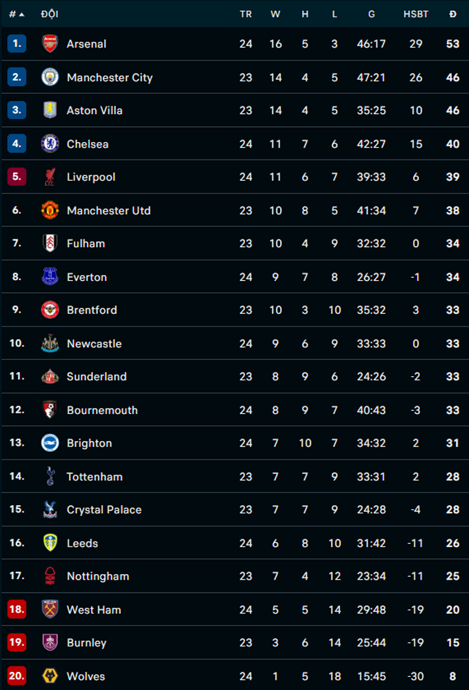 Đội hình thi đấu Chelsea vs West Ham