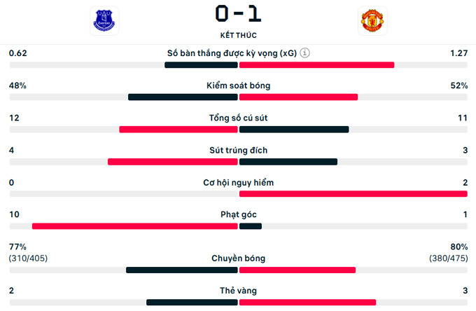 Ở những phút còn lại, Everton vùng lên với nỗ lực tìm kiếm bàn gỡ song MU đã bảo toàn lợi thế mong manh thành công. Chung cuộc, MU hạ Everton 1-0 tại Goodison Park.
