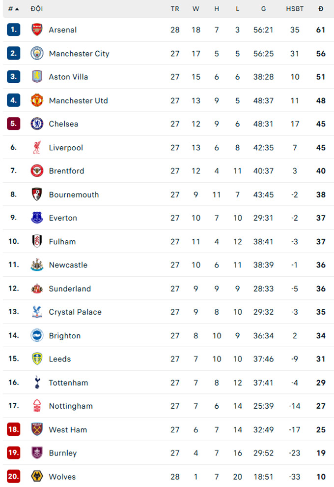 Kết quả này giúp MU củng cố vị trí thứ 4 tại Ngoại hạng Anh 2025/26 với 48 điểm. Ở vòng 28, MU sẽ tiếp đón Crystal Palace vào 21h00 ngày 1/3.